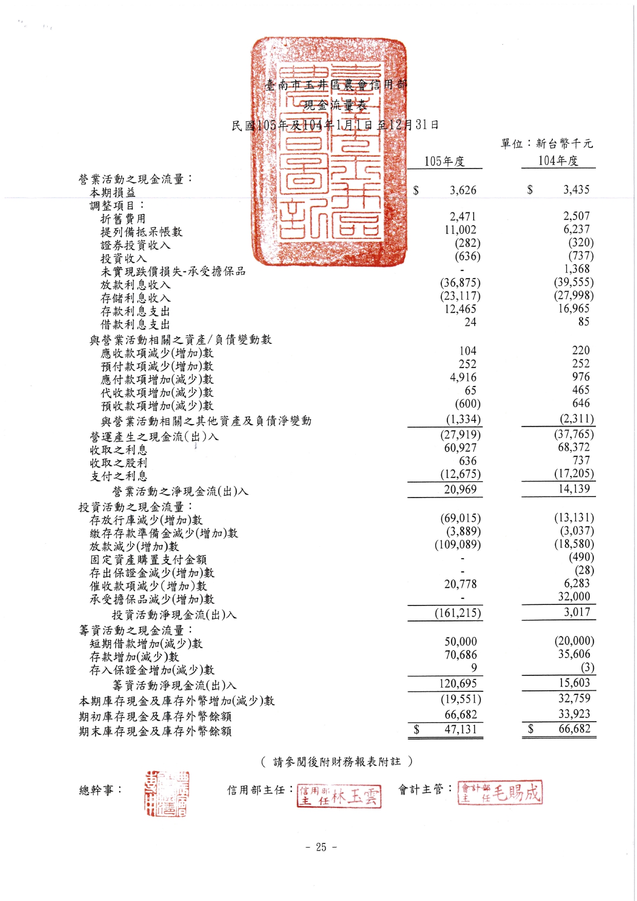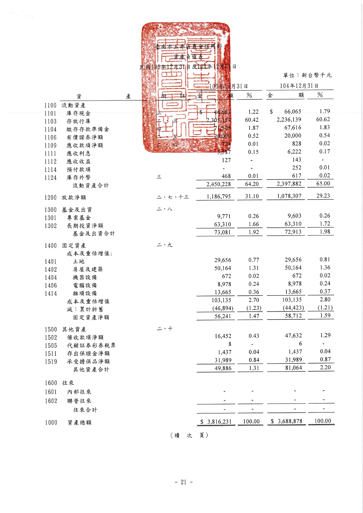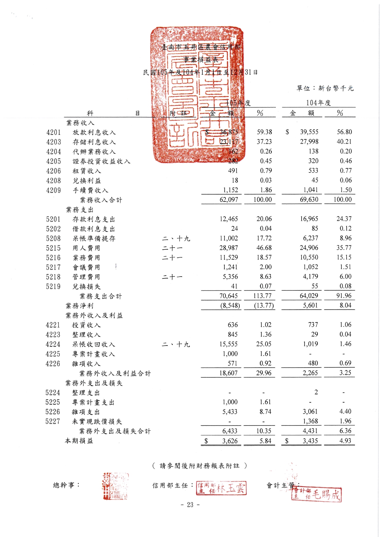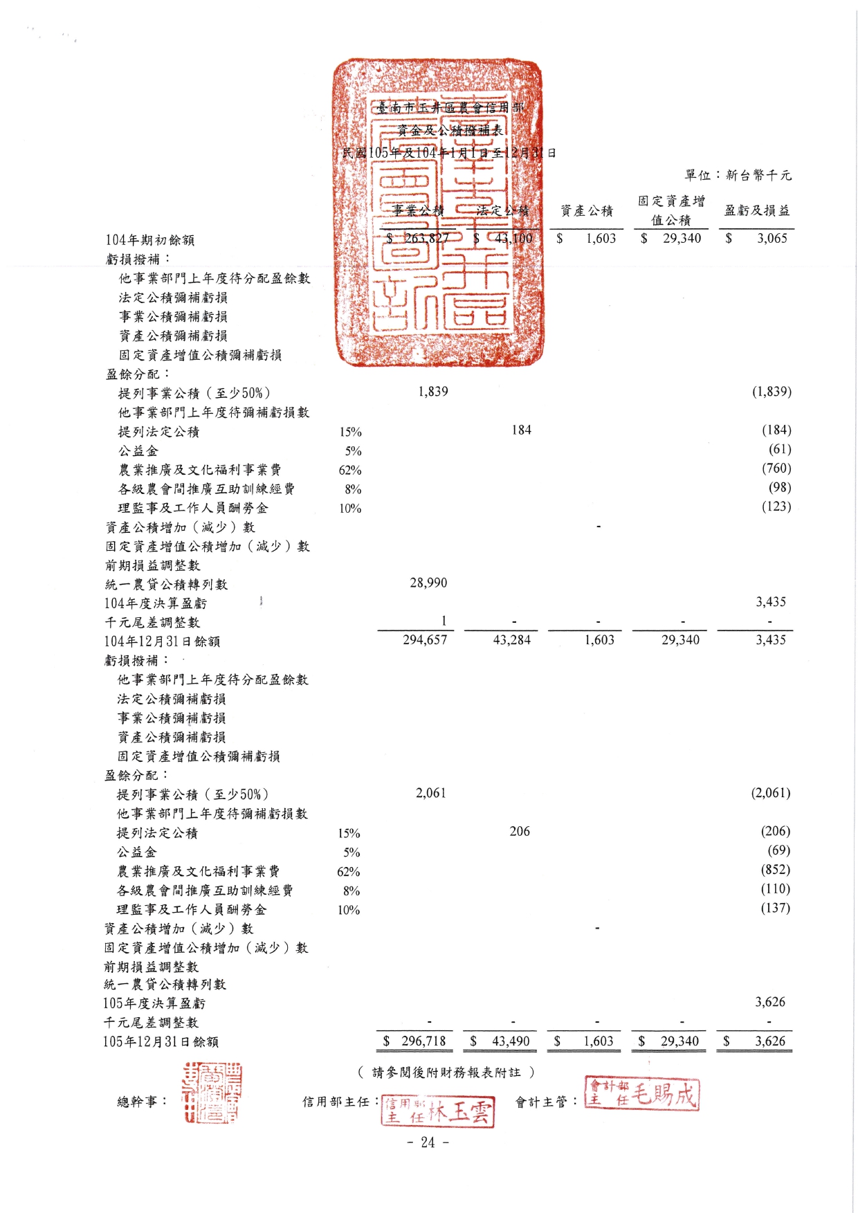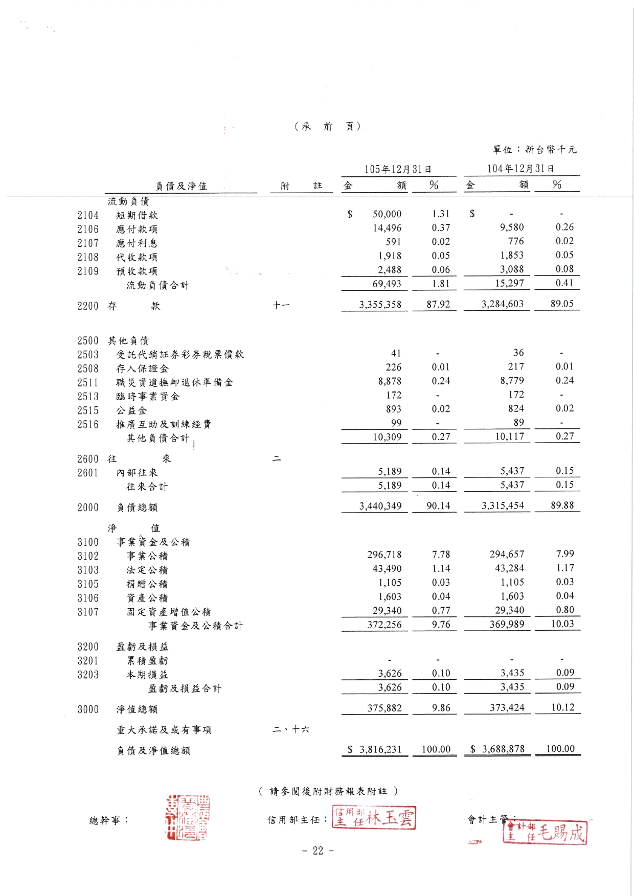 信用部105年財務報表